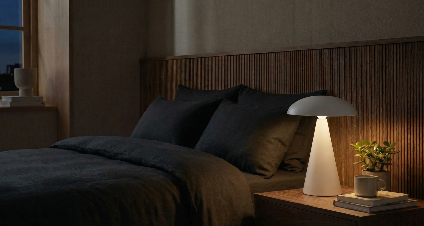 Крупная лампа с цельной геометрией и мягкой пластикой формы. Она работает как акцент в интерьере, собирая композицию вокруг себя и добавляя пространству характер